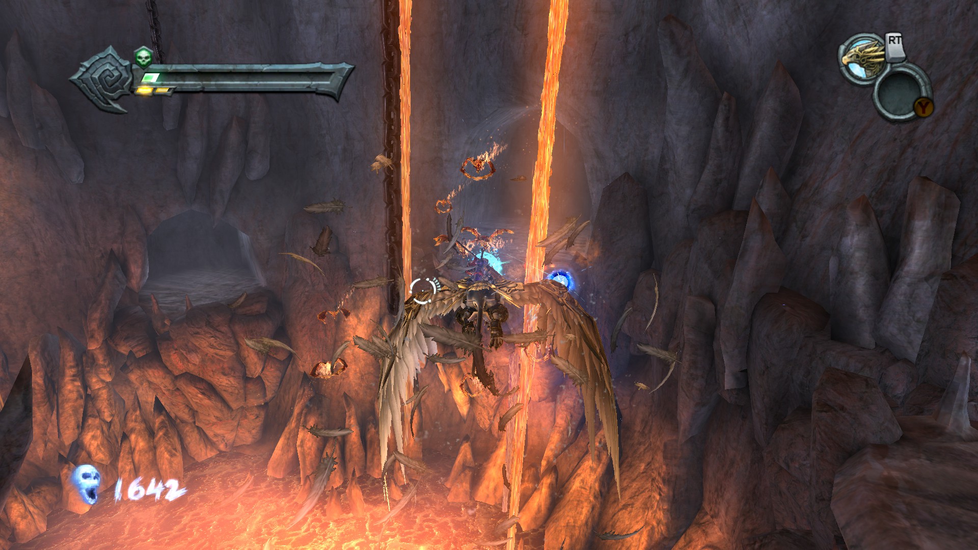 Con Darksiders he vuelto a recordar aquellos tiempos en los que te podías quedar atascado en un puzzle, o perderte por los escenarios buscando la manera de acceder a una parte inaccesible, es un título que sabe recompensar al jugador que explora hasta el último rincón del escenario. El desarrollo de Darksiders me ha resultado tan satisfactorio que otros aspectos a los que normalmente suelo prestar más atención, véase argumento o técnica, han quedado relegados a un lejano segundo plano. Y es cuanto menos curioso porque como juego de lucha tampoco es el no va más, están los típicos combos con espadas, poderes, enfrentamientos contra criaturas de tamaño descomunal… Seguro que te suena. Lo que no es tan habitual es poder recorrer todo el mapeado de principio a fin pudiendo acceder a zonas que previamente parecían inaccesibles, y que ahora pueden ser visitadas gracias a las nuevas habilidades adquiridas durante la aventura. Hablando de habilidades, algunas de ellas son capaces de transformar la jugabilidad completamente, como por ejemplo la posibilidad de ralentizar el tiempo o mejor aún, crear portales al más puro estilo Portal de Valve. Dichas habilidades son inteligentemente integradas en el contexto del juego para sacar partido a la faceta de puzzles, algunos de ellos brillantes no tanto por su complejidad, sino por su volumen. El escenario del Trono Negro es un buen ejemplo de ello, realmente todo el nivel en sí es un macro puzzle en el que se intercalan algunos combates, algo que se ve en pocos, muy pocos juegos hoy en día, y es una sana costumbre que para nuestra desgracia está desapareciendo con los años.