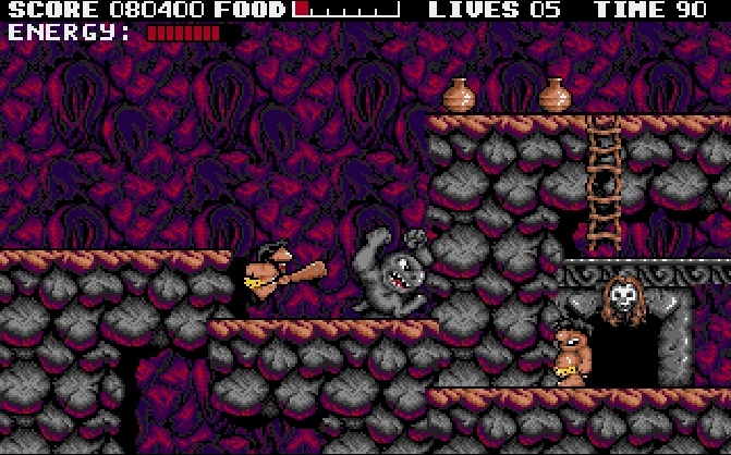 Los primeros años de la década de los 90 estuvieron plagados de arcades y plataformas 2D de todo tipo. No en vano era el trabajo para el que estaban diseñadas las máquinas de aquella época. Los ordenadores Amiga, Atari y las consolas de 16 bits mostraban su poderío en entornos plagados de sprites con diferentes fondos de scroll que daban una cierta sensación de profundidad. En este hábitat se fraguaron auténticas obras maestras de gran complejidad tanto técnica como jugable, pero Prehistorik, el juego del que te quiero hablar, no fue tan lejos. Lanzado en el año 1991 por la compañía Titus para PC, Amiga, Atari ST y Amstrad CPC, se trata de un arcade simple salpicado de un gran sentido del humor, y cuya mayor virtud es la de hacernos pasar un buen rato en los apenas 700 kb que ocupa.