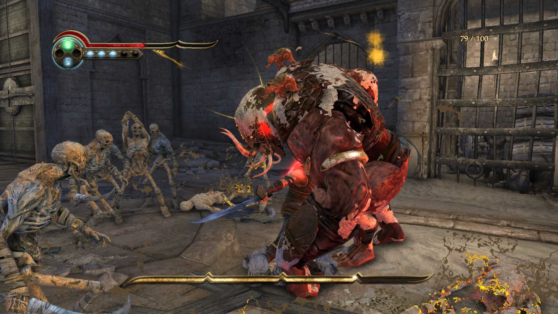Por su parte las secuencias de combates no resultan tan gratificantes, es más, hasta cierto punto podrían catalogarse de anodinas. Hay enfrentamientos contra decenas de enemigos en pantalla, pero la variedad de combos y golpes es un tanto escasa. Tampoco es que los enemigos exijan mucho, basta con aporrear el botón de disparo constantemente y esquivar de vez en cuando para pasarte el 90% de los combates sin recibir un rasguño. No obstante podemos equipar al Príncipe con poderes tales como una estela de fuego, hielo, aire o convertirle en una roca andante. Pero salvo algún combate puntual con el típico enemigo final, dichos poderes son totalmente innecesarios, dando la sensación que este aspecto podría haber estado mucho mejor calibrado. Es evidente que el punto fuerte del juego son las plataformas, pero si finalmente te tomas la molestia de incluir momentos de acción, qué menos que muestren algún aliciente en forma de estrategia, dificultad o espectacularidad, cosa que no sucede.