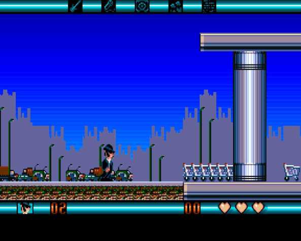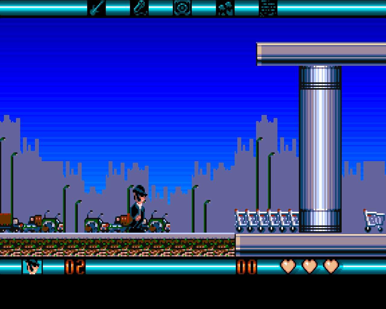Al igual que muchas producciones de la época dorada de los 16 bits, el argumento no era más que una mera excusa para ponerte a los mandos de los protagonistas de turno. En esta ocasión se trata ni más ni menos que de los legendarios Jake y Elwood, los cuales han de cruzar cinco escenarios de la ciudad de Chicago en busca de unos instrumentos musicales para poder actuar en su concierto. Sin embargo el argumento es lo de menos. The Blues Brothers repite los mecanismos vistos en decenas de títulos del género. Estamos pues ante el enésimo plataformas 2D de saltos milimétricos y algún que otro mamporro, mientras investigas a fondo cada escenario hasta encontrar el instrumento extraviado. Un desarrollo clásico, sencillo y directo en el que prima tu habilidad al teclado durante los escasos 5-10 minutos que puede durar cada nivel. Eso sí, para finalizarlo tendrás que practicar mucho, aprenderte por donde salen los enemigos, y buscar esos rincones del nivel que seguramente guardan alguna vida extra. No vas a encontrar ayudas ni continuaciones infinitas, el objetivo no es otro que intentar acabar el juego a capón con tres vidas, así que toca afinar en cada acción lo máximo posible. La única novedad destacable de Blues Brothers era la posibilidad de jugar con un compañero en la misma máquina, un aspecto no demasiado extendido en el género y que añadía cierto toque de originalidad.