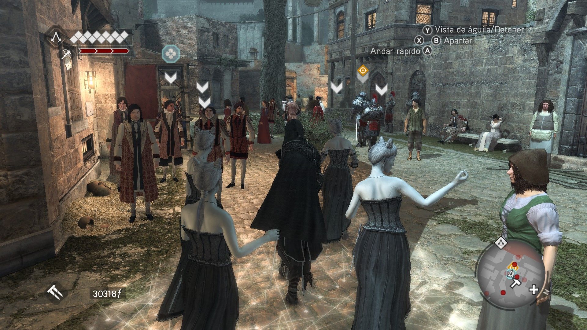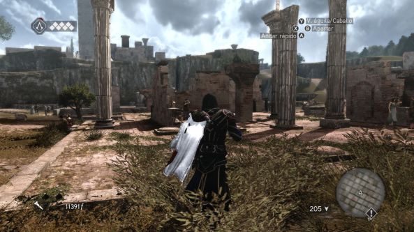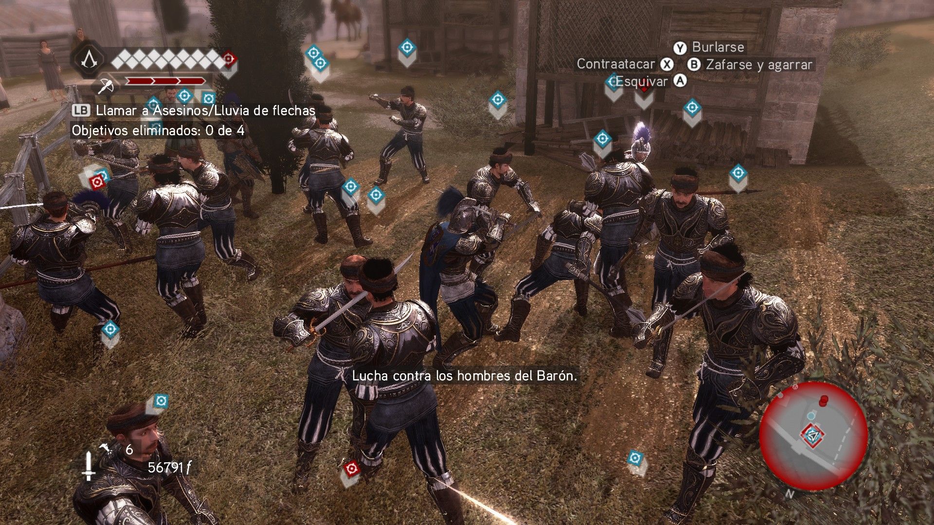 Assassins Creed: La Hermandad se muestra nuevamente como un “sandbox”, cuyo protagonista, el ya conocido Ezio Auditore, tendrá que ir cumpliendo misiones, descubriendo tesoros y cómo no, desgranando un trozo más de la trama que empezó con el primer título de la serie. Ezio cuenta con las ya consabidas habilidades de escalador, espadachín y asesino, y salvo algún que otro movimiento nuevo en el combate así como armas y armamento más variado, poco o nada te va a sorprender. A este respecto sí que hay un par de adiciones interesantes que a continuación explicaré.