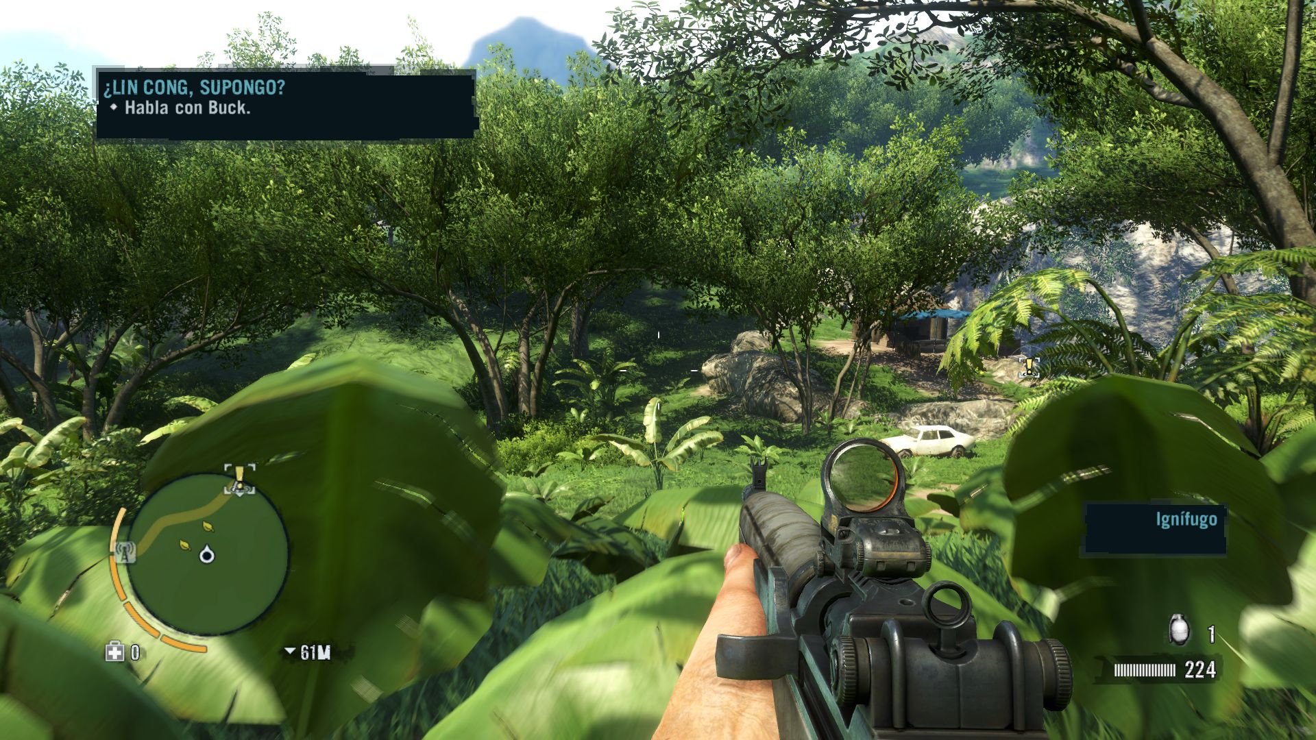De hecho el resto de aspectos jugables resultan bastante más cotidianos. Las misiones que componen la historia principal apenas aprovechan el potencial de la isla, suelen ser niveles muy lineales que se limitan a cubrir los estereotipos ya vistos en el género. Ya sabéis, la típica misión de infiltración, de la acción loca, la que vamos sobre una ametralladora montada en el vehículo de rigor, etcétera. Solo se salvan algunos enfrentamientos contra jefes finales bastante disparatados, pero que en el contexto de drogas y plantas «alucinógenas» que rodea todo el juego, queda bastante justificado. Tampoco faltan a la cita vehículos de todo tipo, desde jeeps hasta lanchas motoras e incluso el traje «wingsuit» con el que puedes planear durante un corto periodo de tiempo; hay un armamento extenso y variado con capacidad de personalización, y cómo no, un montón de secretos y coleccionables que nos obligarán a explorar hasta el rincón más inhóspito de la isla. En este sentido se podría haber aprovechado para incluir objetos más interesantes, porque la gran mayoría de cofres que hay diseminados por el escenario apenas incluyen chorradas que solo sirven para canjearlas por dinero, por lo que al final terminamos obviándolos.