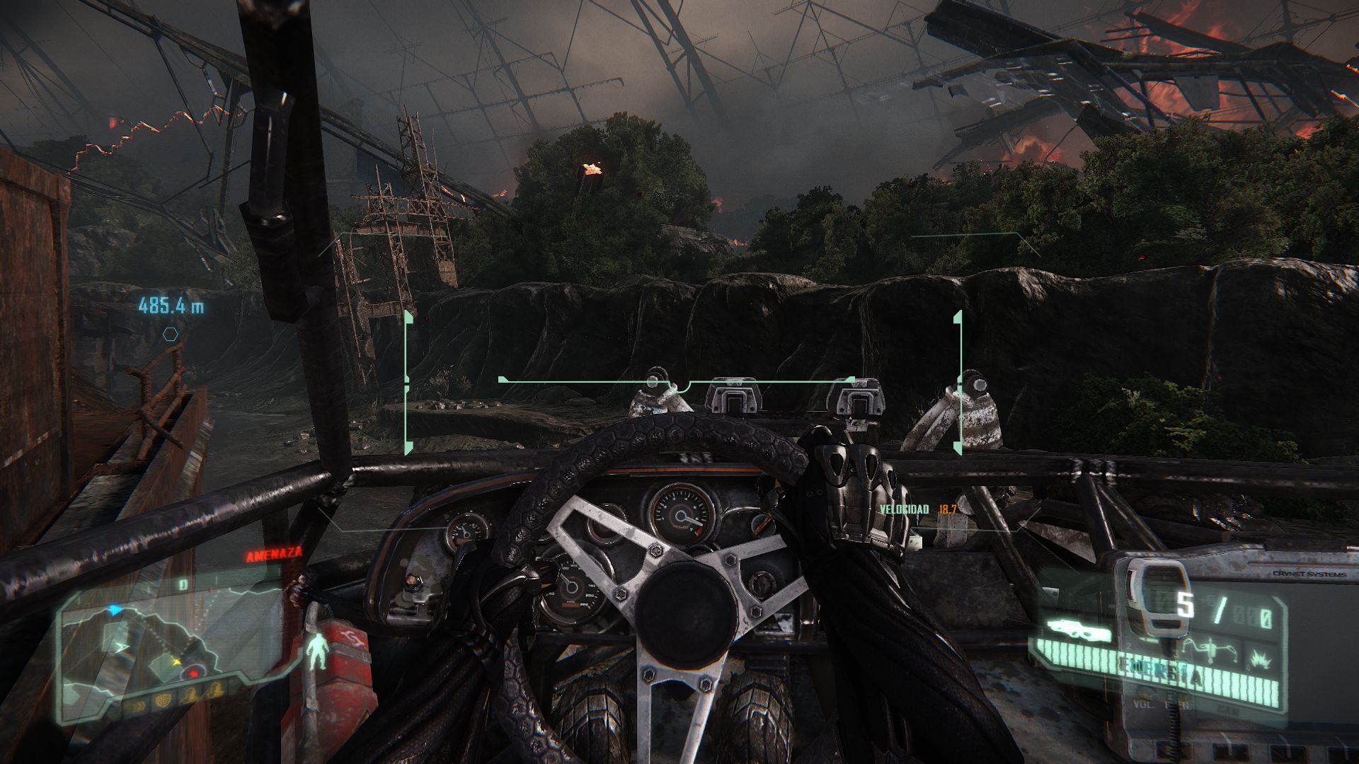 «Sube a uno de esos pisos, otea el horizonte en busca de objetivos, marca tu estrategia y disponte a hacer de depredador». Así es como Crysis 3 funciona de maravilla, casi como un juego de infiltración puro, eso sí, en escenarios muy amplios y con una libertad de movimientos que si bien no llega a su primera entrega, sí que están muy por encima de la media. Y no es la única idea nueva con la que Crytek quiere ganarse adeptos. Hay detalles de otras franquicias que han sido literalmente «fusilados» sin rubor y que, nuevamente, empastan muy bien con esa idea de convertirnos en el depredador. No hay escenario sin tuberías y conductos de ventilación por los que deslizarnos, como si del mejor Deus Ex se tratase. También hay diferentes elementos que podemos hackear, como torretas de vigilancia para usarlas a nuestro favor, o simplemente para dehabilitar minas que nos impiden avanzar en la aventura. Siempre hay diferentes formas de abordar un enfrentamiento, bien a base de infiltración, o bien «a saco» haciendo uso de otro armamento más contundente, a pecho descubierto para ser más concretos. Incluso hay tiempo para coger un buggie a lo Half-Life 2 y recorrer el escenario de punta a punta aplastando enemigos a nuestro paso.