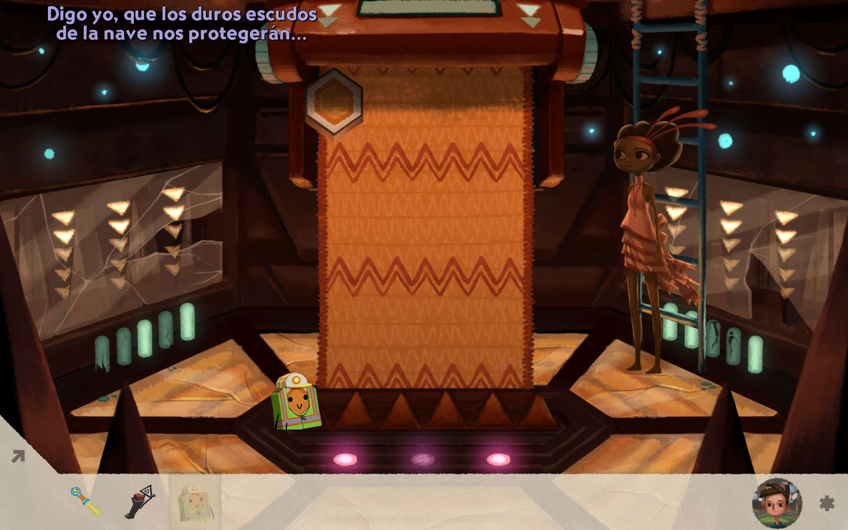 La historia de Broken Age nos traslada a un mundo imaginario en el que dos jóvenes, Shay y Vella, viven sus respectivas vidas sin conocer el uno del otro. Shay es un muchacho que surca el universo en una nave espacial sin destino aparente, y carente de cualquier contacto humano; por su parte Vella es una joven que se prepara para ser entregada como sacrificio al Mog Chothra, una criatura que visita el pueblo de Villa Sacarosa cada catorce años. Ambas historias parecen totalmente independientes, pero como te puedes imaginar, tienen más en común de lo que un principio se puede adivinar. Además, bajo ese aspecto de cuento casi infantil, hay un trasfondo bastante más serio que plantea situaciones duras que te harán pensar, pero siempre poniéndote una sonrisa en tu cara. Broken Age está muy lejos de ser un juego oscuro, más bien todo lo contrario, y es aquí cuando la mano de Schafer se deja notar en el humor tan característico que tenían los juegos de Lucas en los que participó.