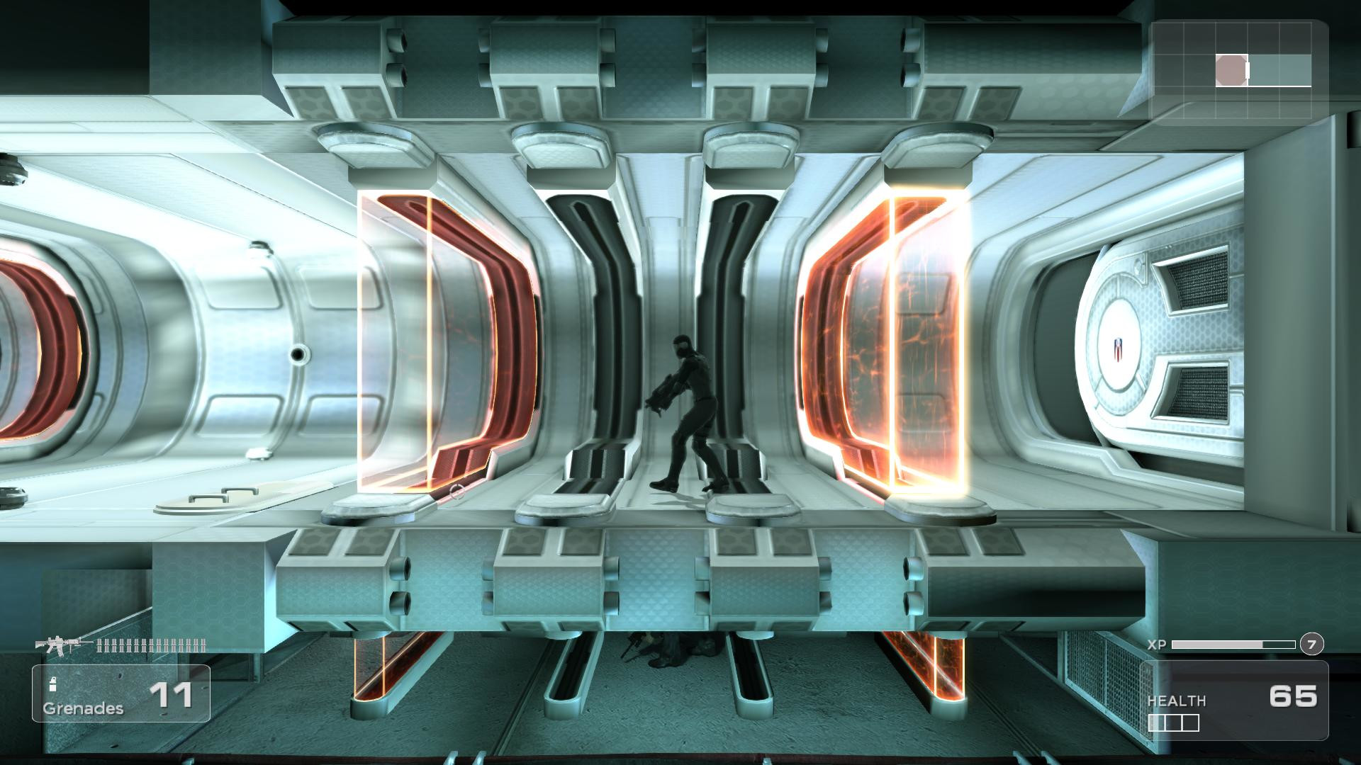Shadow Complex es un «metroidvania» de libro tanto en el desarrollo como en el aspecto visual. Es un juego que se basa en ofrecerte un escenario repleto de estancias cerradas que podrás ir abriendo a medida que avanzas en la aventura, esto implica explorar el mapa hasta la extenuación para conseguir mejoras que te permitan acceder a estancias anteriormente bloqueadas. Hay un sistema de progresión bastante conseguido, en el que empiezas siendo un «pardillo» y acabas convirtiéndote en una máquina de matar capaz de realizar cosas imposibles. De hecho los primeros instantes del juego son algo flojillos, el protagonista apenas puede saltar y defenderse más mal que bien, pero a medida que la trama va avanzando, aparecen nuevos objetivos y sobre todo nuevas mejoras que transforman completamente la jugabilidad. También se ha incluido un sistema de experiencia en plan juego de rol muy light, pero lo atractivo son los gadgets y lo que puedes hacer con ellos. No solo hablo de armamento más potente, o de escudos que absorben más daño, sino de mecanismos capaces de hacerte volar, correr a velocidades vertiginosas, o lanzar ganchos con los que trepar a alturas impensables. Si te gusta este tipo de desarrollo, Shadow Complex es una delicia.