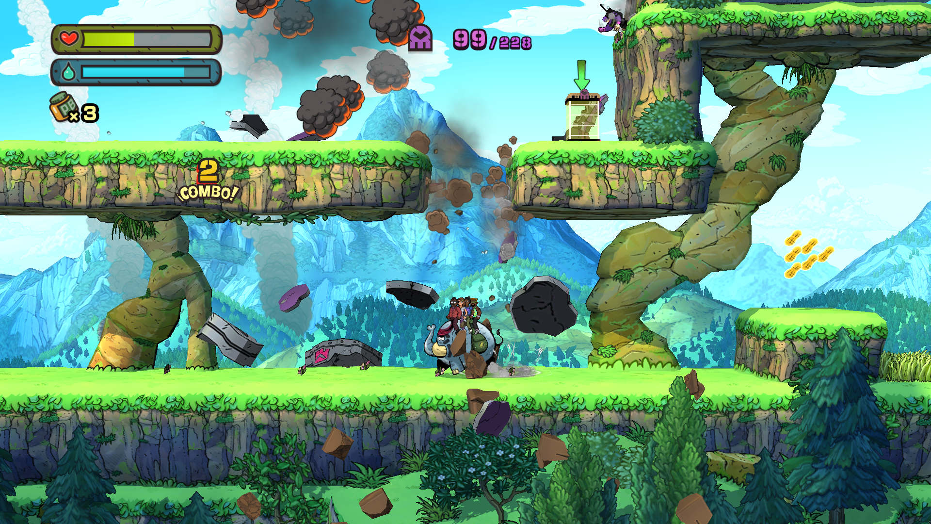 Viendo las capturas que acompañan este artículo, seguramente pensaréis «otro juego digital de plataformas como tantos hay en el mercado». Y no os falta razón. Tembo The Badass Elephant es el típico juego sencillo desarrollado con el motor Unity que ofrece un argumento simple -tú solo contra todo un ejército de invasores-, un personaje simpático, bonitos fondos en 2D, y una jugabilidad terriblemente clásica. Puede que sea una compendio de fórmulas muy explotadas, pero cuando todos sus elementos funcionan como tienen que hacerlo, la experiencia merece mucho la pena. Y esto es precisamente lo que ocurre con Tembo, un juego de mecánicas sencillas pero bien calibradas que dan como resultado horas de diversión de calidad.