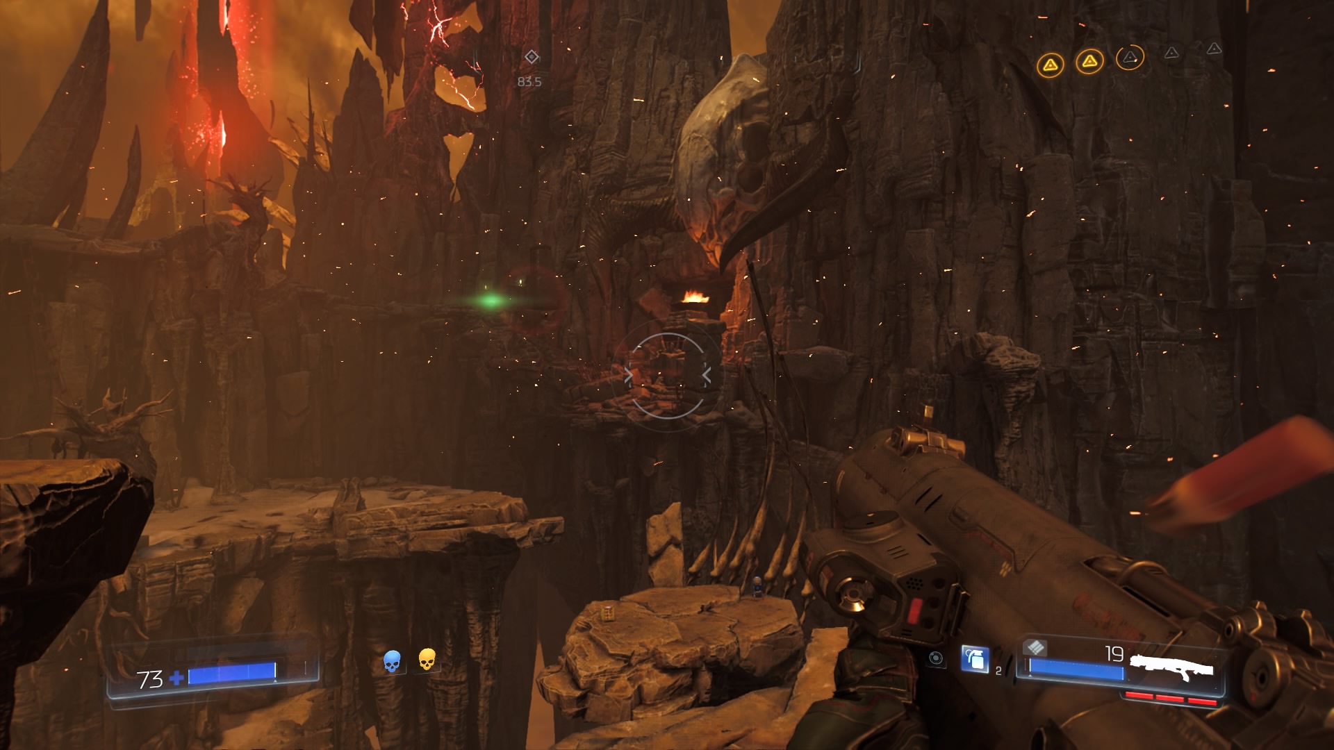 Pero aquí no acaban los parabienes del nuevo Doom. El diseño de niveles es una auténtica gozada que sabe recompensar como pocos la curiosidad del jugador, y todo ello sin recurrir al uso de los llamados «mundos abiertos». Los escenarios son bastos, laberínticos y están repletos de secretos y estancias ocultas que guardan jugosos botines. Al principio pueden parecer muy lineales, pero basta acceder al mapa para comprobar la cantidad de alturas que tienen y lo enrevesados que pueden llegar a ser. Quizá no lleguen a la complejidad de los dos primeros juegos de la saga, pero si los comparamos con lo que se estila hoy en día, su calidad es innegable. Sorprende, y mucho, la inclusión de algunas secciones de plataformas, y digo que sorprende porque la mecánica de salto funciona estupendamente, tanto es así que definitivamente enriquecen la experiencia de juego de una manera que jamás habría pensado de un producto como este.