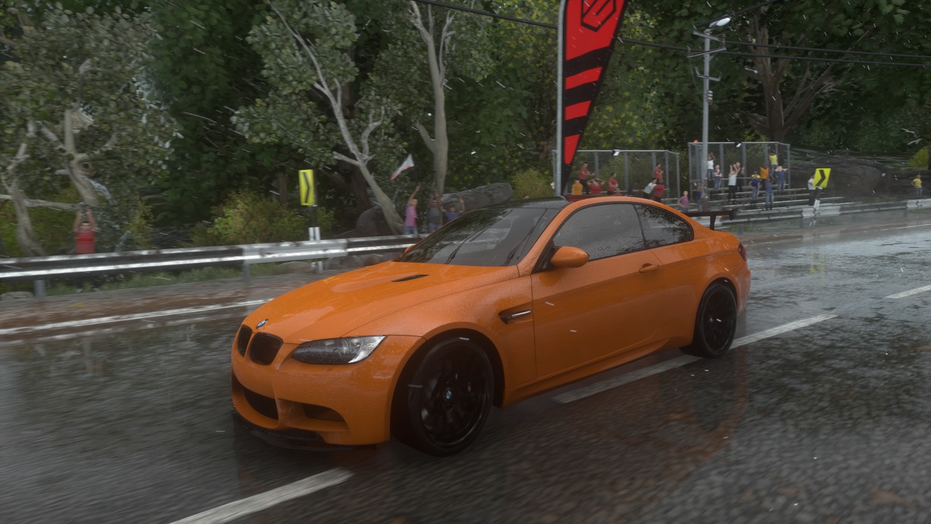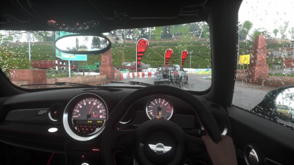 Volviendo a temas más cotidianos del género, Evolution Studios optó por desarrollar un juego de coches técnicamente espectacular y sobre todo divertido que no buscaba la perfección milimétrica de la simulación. Como se suele decir en este mundillo, se trata de «una mezcla entre arcade y simulador», lo que se traduce en que puedes ponerte al volante de cualquier deportivo y realizar una carrera más que digna sin necesidad de conocer el comportamiento de tu coche al dedillo, ni de saber a qué velocidad hay que afrontar cada curva para arañar unas valiosas décimas de segundo. Driveclub tira más hacia lo simple, a elegir el coche que te parezca más chulo, y a disfrutar de unas reacciones asumibles por casi todos los mortales. Y ya de paso, entre curva y curva, disfrutar de unos circuitos ficticios pensados para el lucimiento técnico más que para mostrar tus dotes como piloto. Driveclub es un juego espectacular eso sí, a costa de sacrificios en determinadas áreas que no todos asumirán de buen gusto. Modelados exteriores e interiores exquisitos, circuitos ambientados en escenarios vastos y repletos de detalles, ciclo noche y día en tiempo real con una iluminación sensacional, y sobre todo una recreación de la climatología que supone un nuevo estándar en el género. Es un auténtico espectáculo visual que solo se ve ensombrecido por una tasa limitada a 30 imágenes por segundo, cosa que puede sonar a sacrilegio dentro del género, pero que en la realidad es perfectamente asumible dado el carácter arcade del juego. Sonoramente también goza de un buen nivel, aunque me ha parecido que algunos motores no suenan muy parecidos a sus homónimos reales.