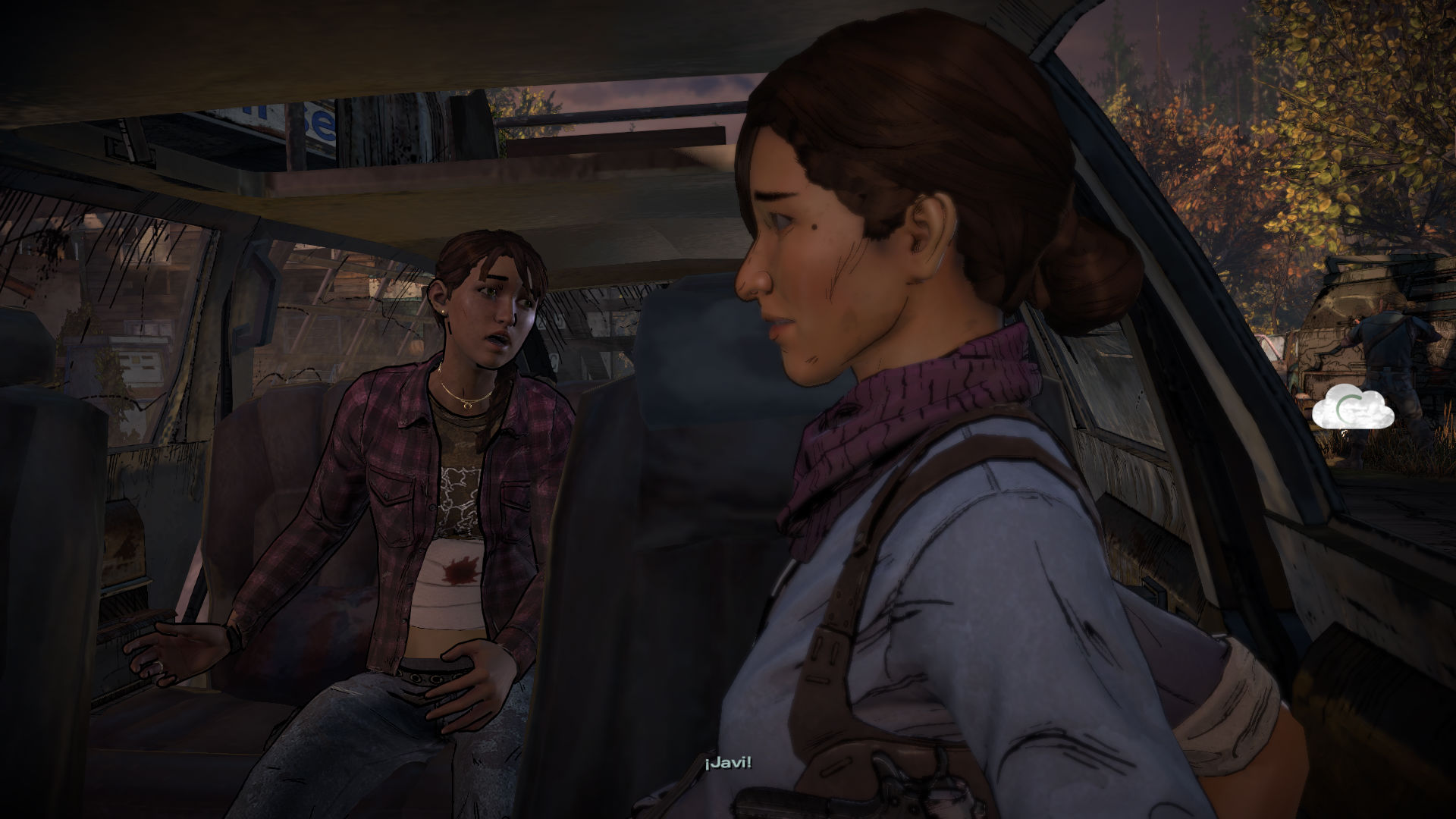 Sin llegar al carisma que tuvo la historia de su primera entrega, con Lee Everet y Clementine a la cabeza, los nuevos protagonistas, Javier García y su familia formada por sus sobrinos y la mujer de su hermano desaparecido, consiguen transmitir la problemática de su relación de una manera bastante convincente. El reencuentro con su hermano David, los sentimientos de este con sus hijos, los celos hacia Javier… En esta entrega Clementine juega un papel más secundario que en anteriores juegos de la saga, de hecho solo controlas sus acciones en flashbacks que arrojan un poco de luz sobre sus vivencias tras lo ocurrido en el segundo episodio. Javier es el auténtico protagonista, un tipo que se encuentra con una responsabilidad no buscada, y que trata de afrontarla de la mejor manera posible. Como es habitual en la saga, el juego te pone ante situaciones límite en las que una decisión puede dar al traste con la vida de un personaje, y en este sentido la fórmula sigue funcionando a pesar de que la historia no está para demasiadas florituras. Es más, me parece que hay signos que indican un leve agotamiento de la narrativa, como por ejemplo el hecho de que cada capítulo dure, como mucho, una hora y media, cuando el primer juego de la saga podían durante perfectamente más de dos horas.
