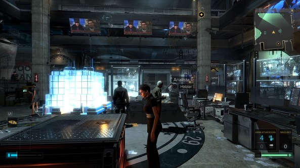 Ese cuidado trasfondo tiene mucho que ver con algunas decisiones, en mi opinión acertadas, tomadas por el equipo de desarrollo. Mankind Divided no se ha adherido a la moda de los mundos abiertos, en su lugar ofrece espacios amplios pero contenidos que, por el contrario, están recargados de detalles. Ir de una punta a otra del mapa es cosa de muy pocos minutos, no hay ciclo día y noche, los personajes no obedecen a rutinas realistas, e incluso hay tiempos de carga enmascarados en forma de trayectos en metro, al igual que sucedía en su precuela. Por el contrario puedes visitar el interior de casi todos los edificios que encuentres en tu camino, ya sean las típicas tiendas que venden suministros, o un edificio de viviendas, cada una de ellas accesible con su historia, sus referencias, su ordenador con emails que cuentan cosas interesantes, a veces indiferentes, y otras que te pueden llevar a una misión secundaria. Es decir, se plantea un mundo más lleno que en los típicos sandbox cuyos escenarios suelen ser páramos de polígonos recubiertos de texturas, carentes de interacción alguna. Tampoco se apunta a la moda de meter misiones y objetivos secundarios a tutiplén con el fin de alargar el juego inútilmente. Mankind Divided es un juego relativamente parco en este sentido. Hay misiones principales y secundarias -tampoco muchas-, pero casi todas están realmente cuidadas tanto a nivel de desarrollo, como en el trasfondo. Es cierto que las principales cuentan con algo más de esmero en su realización, algo totalmente lógico por otra parte, pero la gran mayoría de secundarias merecen la pena por sí solas.