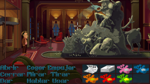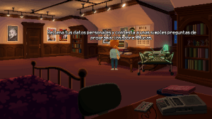 Y siguiendo con lo clásico, si eres un poco mayorcito -por no decir viejuno- y te gusta el género, bastará un simple vistazo a las capturas que acompañan este artículo para ver claramente de donde viene su aspecto gráfico. El parecido estético con Maniac Mansion es más que evidente: muñecos cabezones, cuerpos pequeños, pantalla partida con un menú de acciones… Eso sí, los nuevos tiempos se dejan notar con un uso del color infinitamente más generoso, un montón de animaciones adicionales, y un desplazamiento de pantalla con varios planos de scroll que en la época hubiese sido poco menos que una fantasía. Se siento añejo y al mismo tiempo bonito de ver. La aventura está acompañada en todo momento de una banda sonora estupenda, y voces en inglés con sus correspondientes subtítulos en castellano, rótulos incluidos, lo que es un detalle tratándose de un producto con orígenes kickstarter.