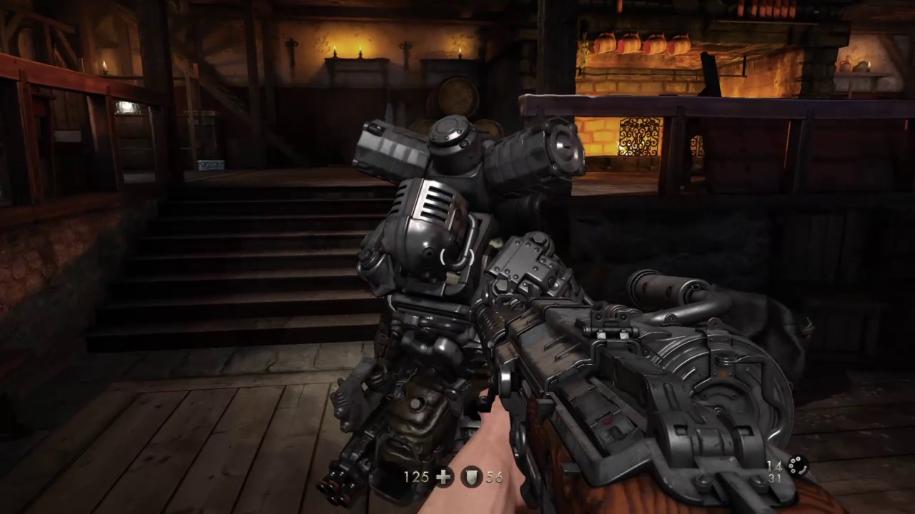 En cuanto a mecánicas y desarrollo, The Old Blood es lógicamente un calco de lo visto en su primera entrega. La acción sigue combinando momentos de tiros desenfrenados, con otros más pausados en los que se potencia el sigilo para acabar con los generales antes de que salten las alarmas. El diseño de niveles también hace hincapié en la búsqueda de rutas alternativas para afrontar los combates, lo que sin duda constituye una de las señas de identidad de la saga, y en los cuales no pueden faltar los típicos secretos en forma de notas, cartas o lingotes de oro. El armamento tampoco ha experimentado grandes mejoras salvo la inclusión de nueva pistola capaz de lanzar balas explosivas, así como una tubería con la que puedes escalar algunas paredes y ya de paso machacar a los nazis por la espalda. Como ves, no hay nada especialmente diferente respecto a The New Order, es más de lo mismo lo que en mi opinión es una buena noticia.