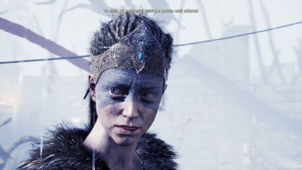 Donde no hay mucho que reprocharle es a nivel de ambientación. Y no es que se recree demasiado en el lucimiento gráfico, pero sabe aprovechar los efectos de la locura distorsionando la realidad que pone ante tus ojos de una manera brillante. Se nota que Senua es la auténtica protagonista de la aventura, como consecuencia siempre ocupa un primer plano bastante importante, y cuando toca ver su cara se aprecia el gran trabajo realizado en la expresividad de sus rasgos. Hay algunas muecas que no quedan del todo creíbles, pero por norma general hay más luces que sombras en este sentido. Pero si hay un apartado que pueda calificarse de brillante en este juego es el sonoro. No por sus melodías ni por sus efectos, sino por el excepcional uso del sonido binaural -obligado jugarlo con cascos- que da una credibilidad fantástica a todas esas voces que salen de la mente de Senua, y que te hacen partícipe en todo momento de lo que siente la protagonista. Con un sistema de altavoces también se disfruta, pero no se aprecia la «espacialidad» que se consigue con cascos. Sin duda, todo lo que concierne a la ambientación en Hellblade está cuidado con mucho mimo.