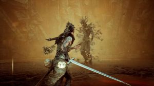 La forma de trasladar esta premisa es, a priori, la que se esperaría de un estudio como Ninja Theory, pero a pesar de las apariencias, la realidad es muy distinta. Hellblade es un juego «pasillero» que dura las típicas ocho horas, un tiempo más que correcto para una aventura que en ciertos aspectos se asemeja más a una experiencia narrativa que a un videojuego tradicional. El desarrollo combina momentos de exploración, con puzles de fácil resolución, y secuencias de combate muy ligeras. La mezcla puede sonar muy atractiva, pero a pesar de las buenas intenciones de sus creadores, termina funcionando a medio gas. Los paseos por los escenarios se sienten casi como un walking simulator en el que las voces y las visiones condicionan todo lo que ves en tu entorno, pero hay poco o nada por lo que merezca la pena investigar, salvo para resolver los puzles. Estos suelen limitarse a encontrar formas geométricas en las construcciones de los escenarios para desbloquear la siguiente puerta. Es cierto que se intercalan con otros puzles, también muy sencillitos, pero esta práctica se repite de manera sistemática una vez tras otra, y al final deja de tener encanto. Pero sin duda el apartado más soso recae en los combates, curiosamente donde Ninja Theory debería dar el do de pecho. El sistema resulta extremadamente rígido y simple, la cantidad de movimientos y ataques es ridículamente limitada, y no hay rastro de combos o secuencia de golpes especiales, de hecho prácticamente desde el minuto uno ya dispones de todas las técnicas de Senua. Además, hay muy poca variedad de enemigos, y lo que es peor, casi todos ellos se derrotan de una manera muy parecida. La única dificultad añadida viene de meter más enemigos en pantalla, y de una cámara que no es del todo libre ya que se encarga de enfocarte siempre hacia un objetivo. Es, en definitiva, un combate muy descafeinado que quizá va en consonancia con el resto de aspectos jugables, pero no quita para que resulte poco decepcionante.