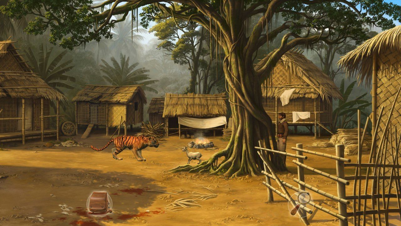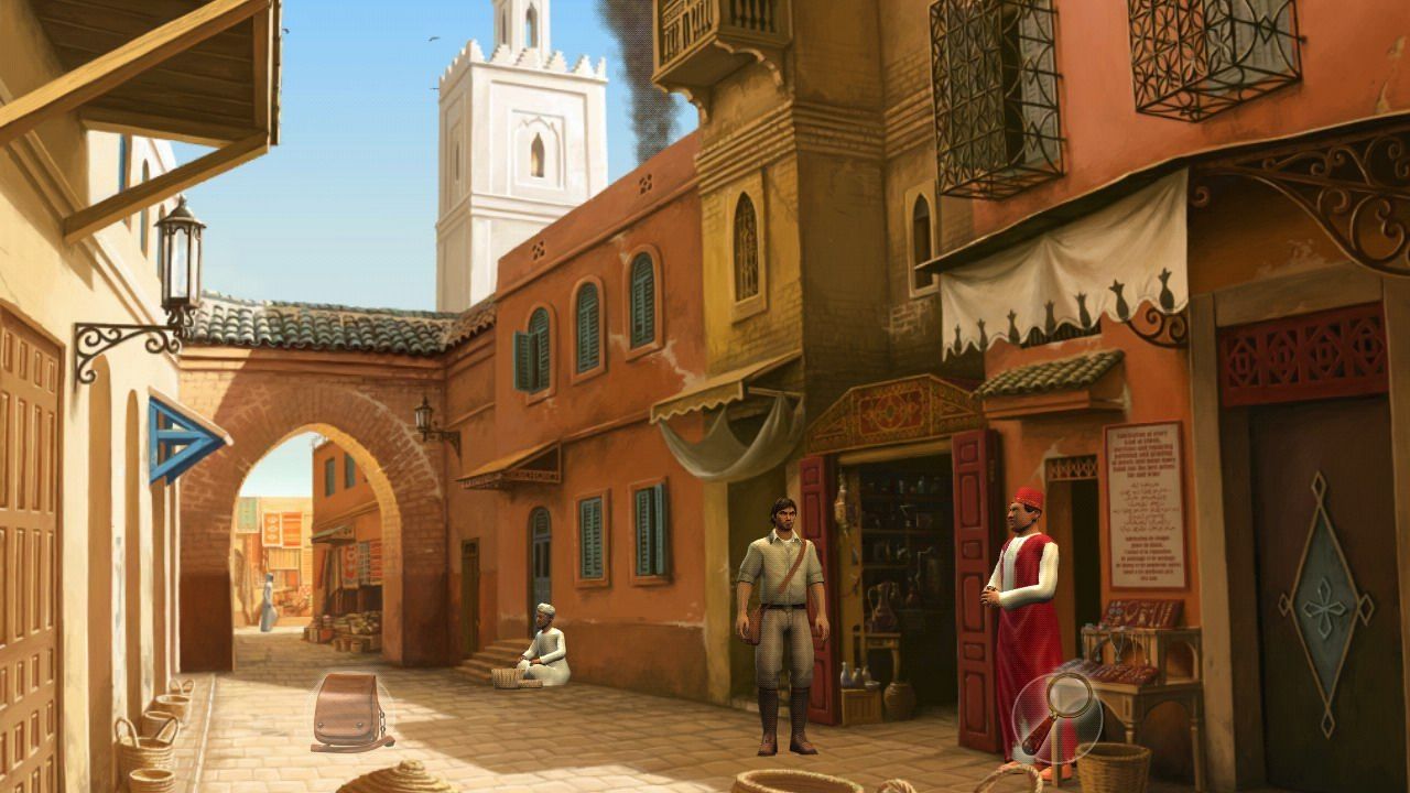 Pero una vez pasado ese periplo, que en mi opinión se alarga más de lo deseado, el juego remonta de una manera bastante digna. Los escenarios ganan en libertad y complejidad, la cantidad de objetos en el inventario también crece, y todos esos diálogos y reflexiones que a veces se hacían un poco pesados, muestran una pequeña mejoría que los hace más llevaderos. No obstante Lost Horizon está muy lejos de poder codearse no solo con las vacas sagradas de los 90, sino con otras aventuras gráficas posteriores de carácter notable. No hay puzles brillantes de esos que te hacen lanzar una exclamación cuando los resuelves, ni tampoco escenarios enormes que te hagan sudar la gota gorda imaginando donde poder usar un objeto. De hecho la mayor dificultad está en que olvides examinar algún objeto del escenario o del inventario, y que a la postre pueden habilitar nuevos caminos para seguir la aventura. También hay momentos de «pixel hunting», cosa que por otro lado se puede evitar activando la opción de mostrar todos los objetos en pantalla, muy en la línea de las aventuras más modernas.