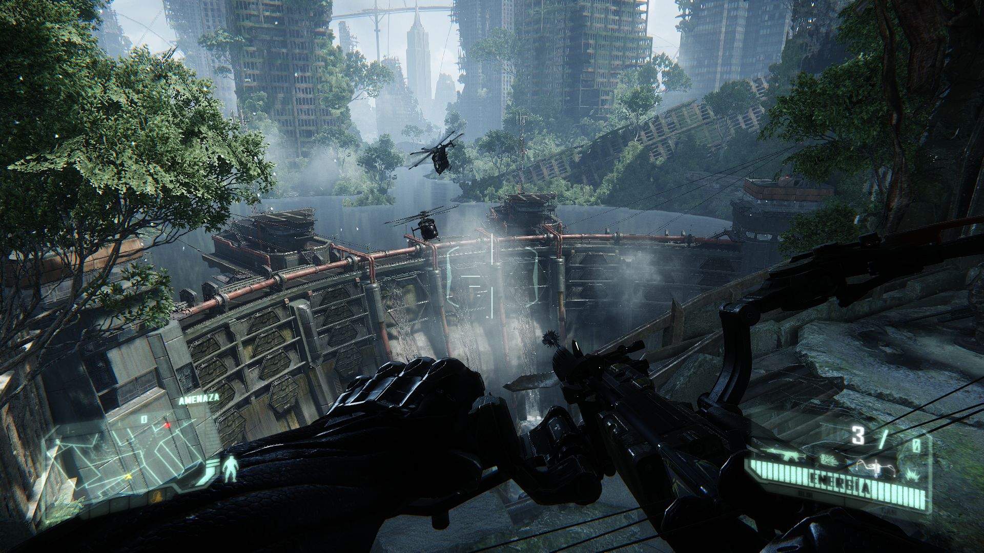 Crysis es una saga de músculo, de poderío técnico, de querer hacer las cosas a lo grande aunque no siempre con el resultado esperado. El objetivo de sus juegos no es otro que el de dejarnos boquiabiertos, y en este sentido el CryEngine de turno cumple con creces desde el primer minuto. La campaña de Crysis 3 nos traslada a un escenario sacudido por una fuerte tormenta, en el que la recreación de la lluvia que nos azota es acojonante. ¿Será la mejor lluvia jamás vista en un videojuego? Pues muy probablemente sí. Hablo de la lluvia, pero solo es uno más de los cientos de efectos donde Crysis 3 es una maravilla. Además, el CryEngine 3 se desvela como un motor muy escalable y que se ve realmente bien en un montón de configuraciones diferentes. Con una gráfica de gama media, ya se ve de auténtico escándalo, y no solo eso, si tienes un hardware de gama alta también verás recompensado tu desembolso.