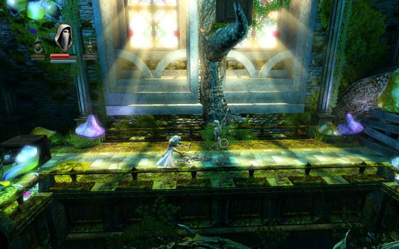 Lo realmente interesante de Trine es que hace un uso intensivo de las físicas en todo su desarrollo de puzzles. Todos los objetos se comportan como lo harían en realidad, y son muchos los momentos donde debemos manipular objetos para alcanzar un determinado punto, o por ejemplo conseguir que una rueda mecánica se mueva hacia una determinada posición para alcanzar un risco inalcanzable. A todo esto hay que sumarle el enfrentamiento de enemigos, clásico indiscutible del género, salto de plataformas móviles, enfrentamientos con «bichos» grandes, pociones de vida, maná y obtención de experiencia que nos permitirá ir ganando habilidades. Vamos, un sinfín de situaciones que nos harán recordar los mejores tiempos de los clásicos 2D de antaño.